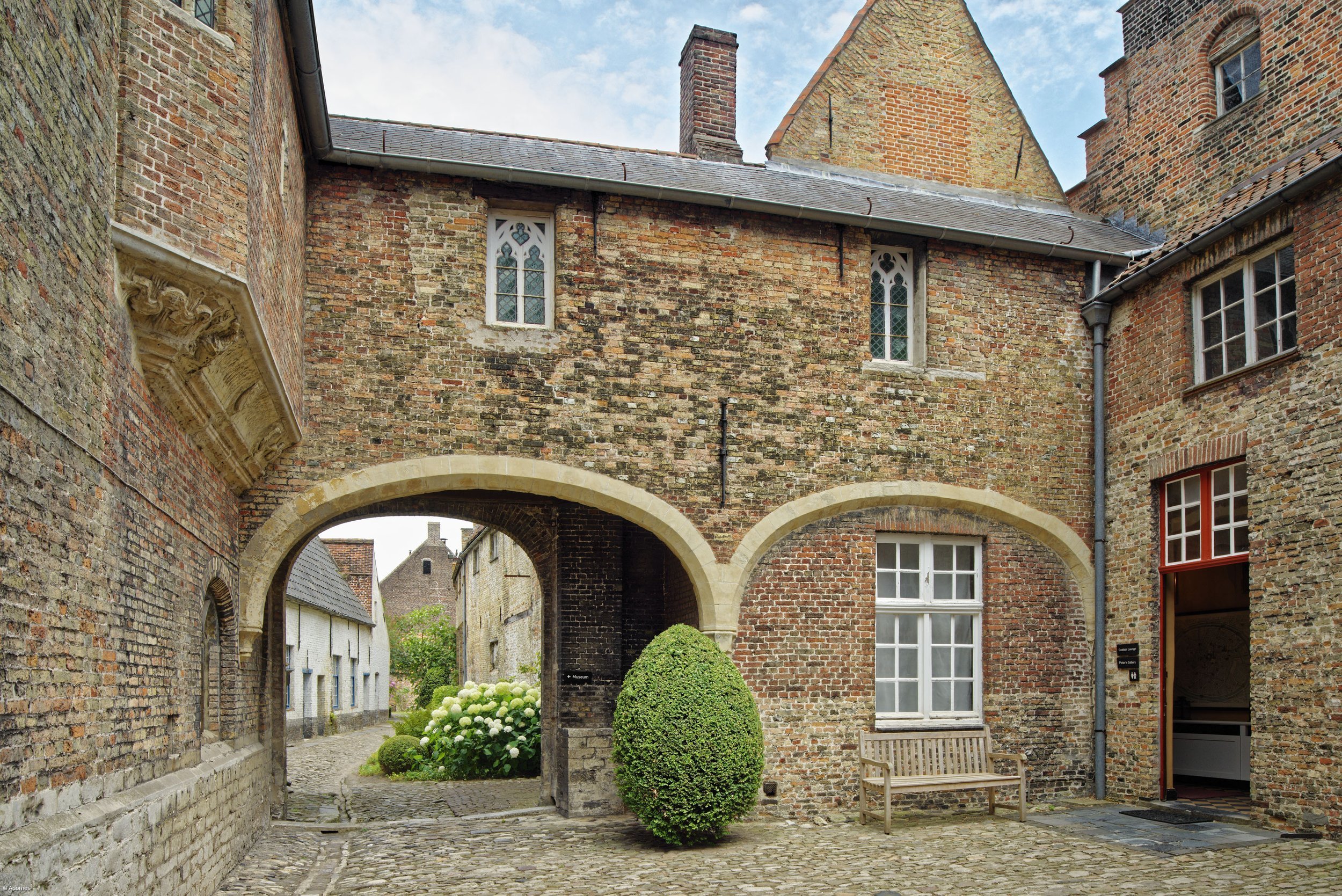 Stap de gekasseide binnenkoer van het Adornesdomein op en je waant je meteen honderden jaren terug in de tijd. De site ademt middeleeuwse grandeur. De familie Adornes, afkomstig uit het Italiaanse Genua, vestigde zich rond 1300 in Brugge. Door slim handelsinstinct, strategische huwelijken en goede connecties klom het geslacht op tot de hoogste regionen van de macht. In het Brugge van de 15de eeuw behoorde de familie tot de elite en bekleedde ze sleutelposities in het politieke en economische leven.