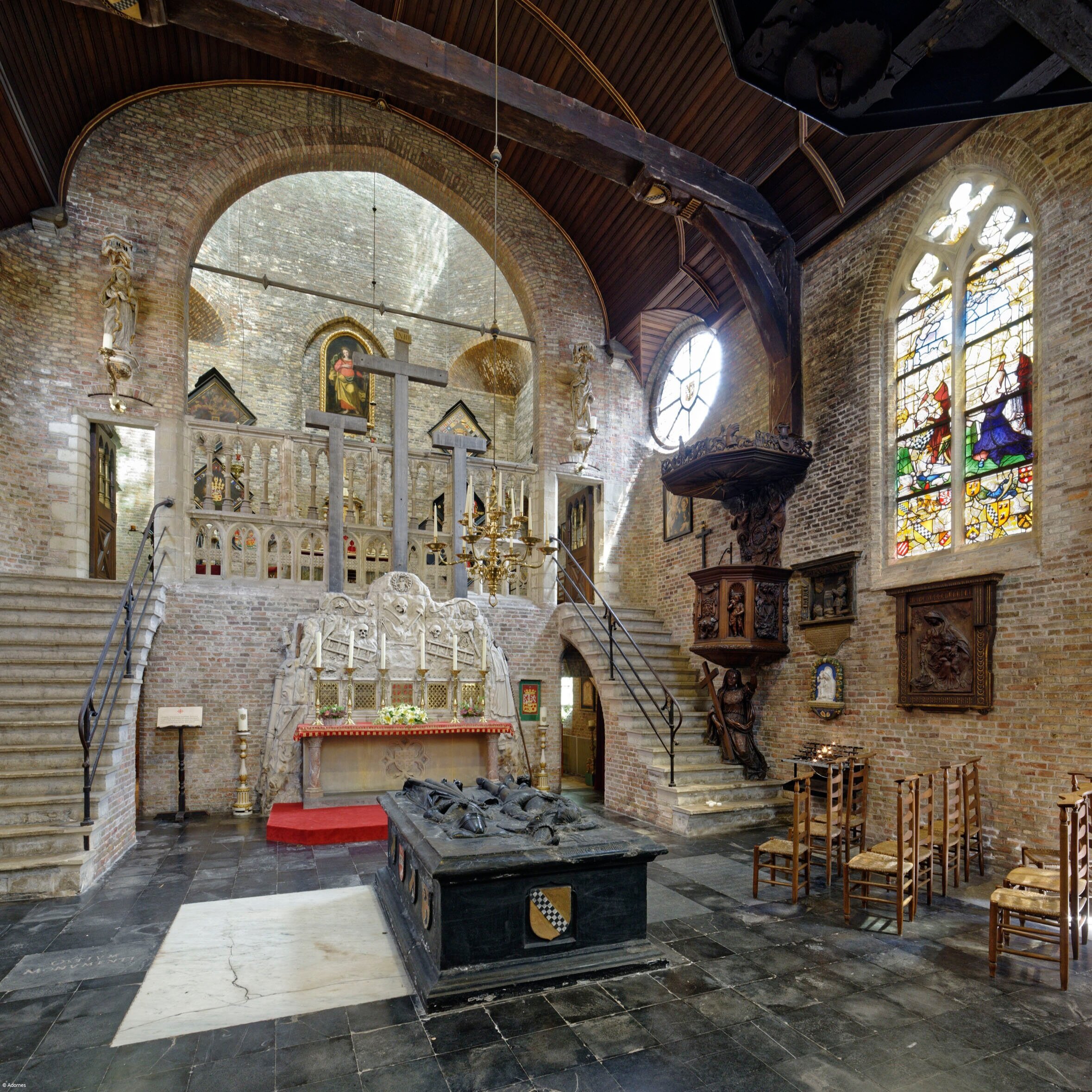 De familiekapel, ingewijd in 1429, is het pronkstuk van het domein. Zijn vreemde architectuur en unieke inrichting spreken tot ieders verbeelding. Een stukje Midden Oosten in hartje Brugge.
